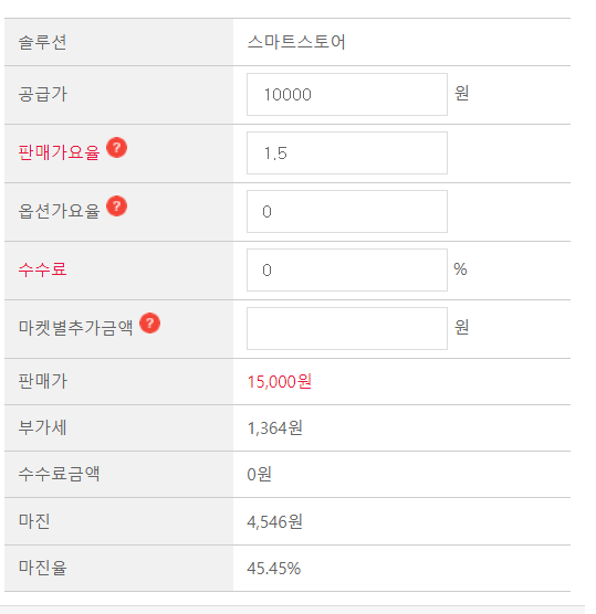 예를 들어 1.5를 입력하면, 상품가 와 판매가 마진을 알 수 있는데요