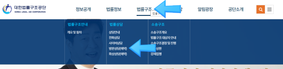 포털 사이트에(대한법률구조공단)을 검색하시거나 위 링크를 타고 들어가셔서 해당 사이트에 접속합니다.