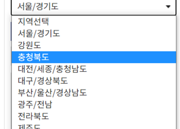 지역 선택 시 : 본인의 거주 지역(가까울수록 방문 용이)을 선택하시고